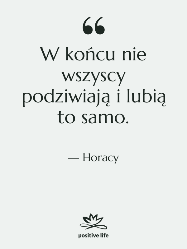 Podsumowując, cytat Horacego to nie tylko proste stwierdzenie o różnicach w gustach, ale głęboka refleksja nad naturą ludzkiej subiektywności, wyzwaniem dla absolutystycznych poglądów na wartości, oraz wezwaniem do akceptacji indywidualnych różnic. Psychologicznie, otwiera drogę do zrozumienia unikalności ludzkiej psychiki, dynamiki percepcji i wartościowania, a także znaczenia tolerancji i autentyczności w społeczeństwie i życiu jednostki.